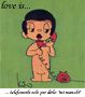 Due adolescenti in tenero contatto con le mani, con i volti circondati da cuoricini. Nella frase "Love is... leggere il significato della vita l'uno negli occhi dell'altra" e' il succo della vignetta.