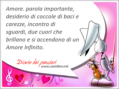 Amore. parola importante, desiderio di coccole di baci e carezze, incontro di sguardi, due cuori che brillano e si accendono di un Amore Infinito.