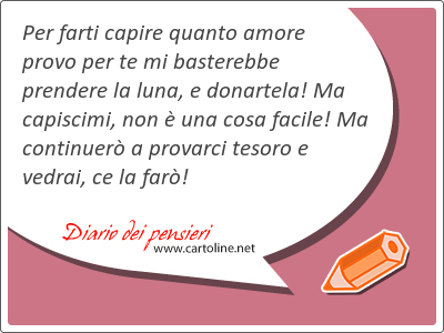 Per farti capire quanto amore provo per te mi basterebbe prendere la luna, e donartela! Ma capiscimi, non è una cosa facile! Ma continuerò a provarci tesoro e vedrai, ce la farò!