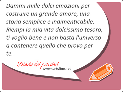 Frase di film I passi dell'amoreLa felicità non è quella delle grandi cose, la felicità è fatta di piccole cose, vere ma preziose, bastano le parole di una canzone a far venire un brivido, basta un sorriso dolce quando sei triste, un bacio passionale, una carezza quando hai voglia di coccole