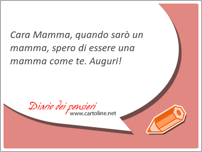 Cara Mamma, quando sarò un mamma, spero di essere una mamma come te. Auguri!